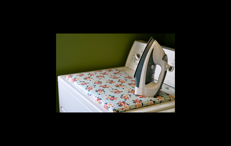 Do you always seem to have dirty clothes lying around? Or perhaps you don't have room for a real hamper? You can keep your clothes organized with this super cute hanging door hamper (as seen in photo 7). All you need is some cute fabric, an old embroidery hoop, and a needle and thread, and you're set. Speaking of clothes, is an ironing board out of your budget? Is it too much work to get it out and put it away every time you find a shirt on your floor that you didn't actually wear but is as wrinkled as a sharpei puppy? Go for this cute mini ironing board that can sit on your washer (as seen in photo 8). It's portable, decoratively appealing, and is always easily accessed. Virtually no cleanup required!