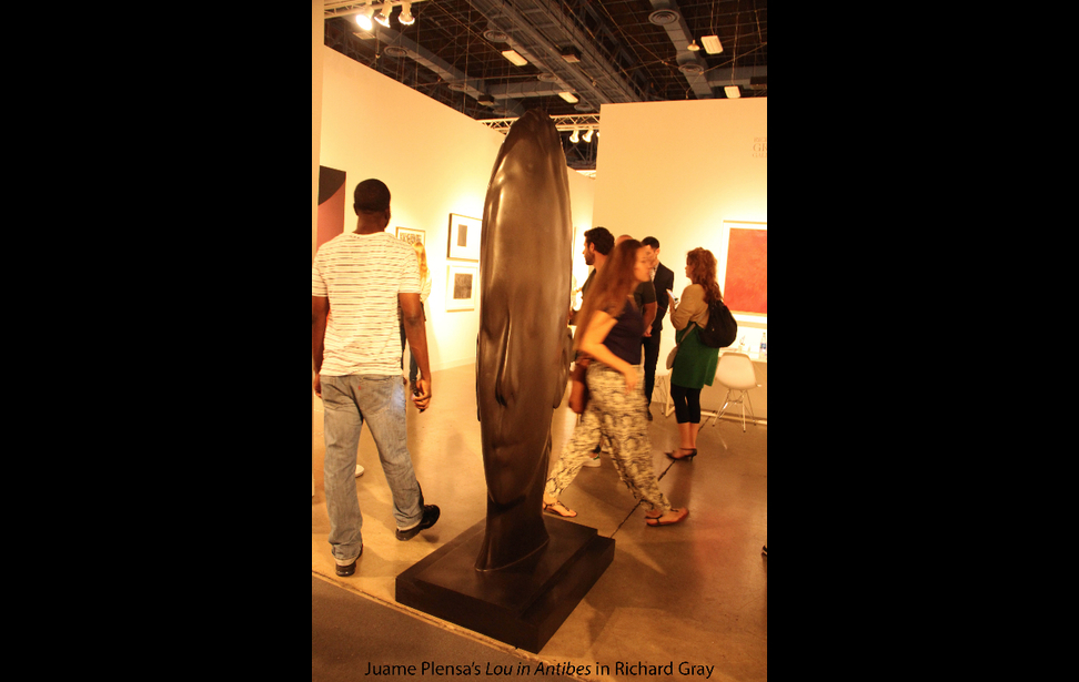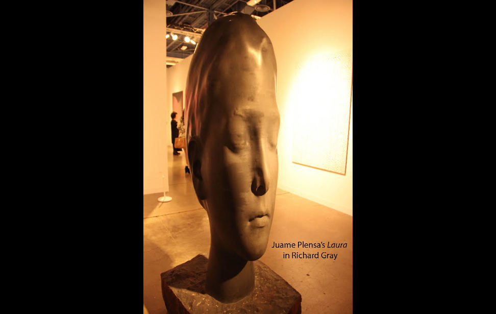 Welcoming visitors into two of the entrances of the Richard Gray gallery are two of Barcelona born Juame Plensa’s awe-inspiring, evocative sculptures: Laura (Basalt, 2015) and Lou in Antibes (Bronze, 2015). To take a clear photo of these two pieces of art took some time, so many people were standing in line for their turn to gaze upon the sculptures’ beautiful features, natural textures, and interesting shapes.