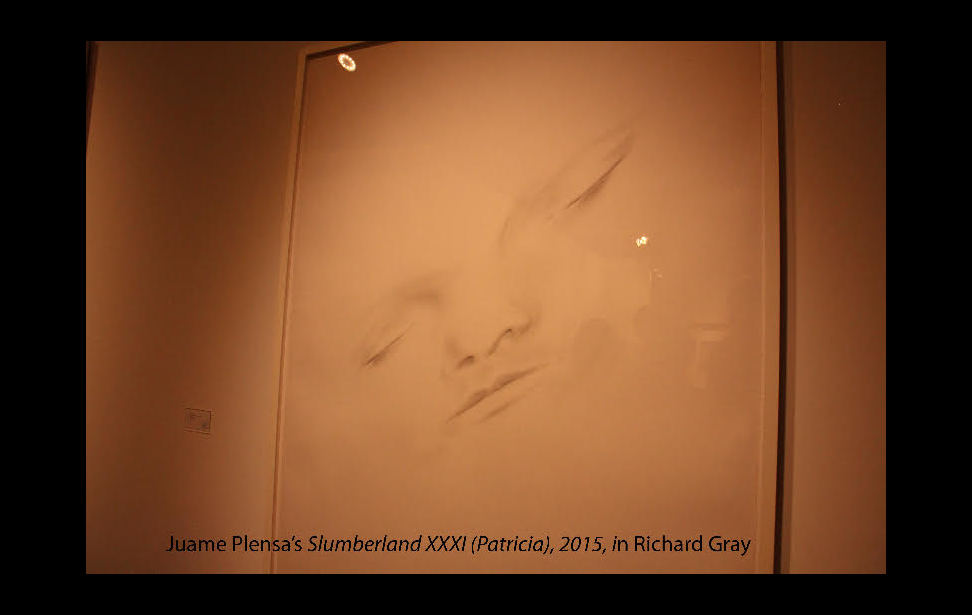 A wall-sized drawing by Plensa: Slumberland XXXI (Patricia), 2015, graphite on paper, also graces a front wall of Richard Gray gallery.