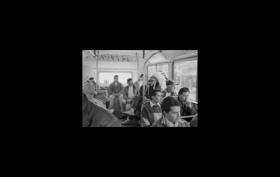4.) Zig Jackson, Indian on Mission Bus, 1994, from the series Indian Man in San Francisco. Pigment print. Courtesy of the artist and Andrew Smith Gallery © Zig Jackson.