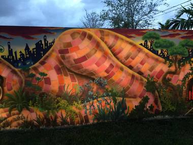 While living in New York City a few years back, I came across a beautiful mural by the legendary graffiti artist Lady Pink. Since that day, I have become a huge fan. Her work is so detailed, magical, and whimsical and contrasts the gritty feel of New York City. Her work is so respected that street-tagging kids will not write over her walls. Words cannot express my delight when years later I stood in front of her beautiful work of art, Reclining Woman, done in collaboration with Women on the Walls during Art Basel Miami Beach. See photos in the gallery for details.