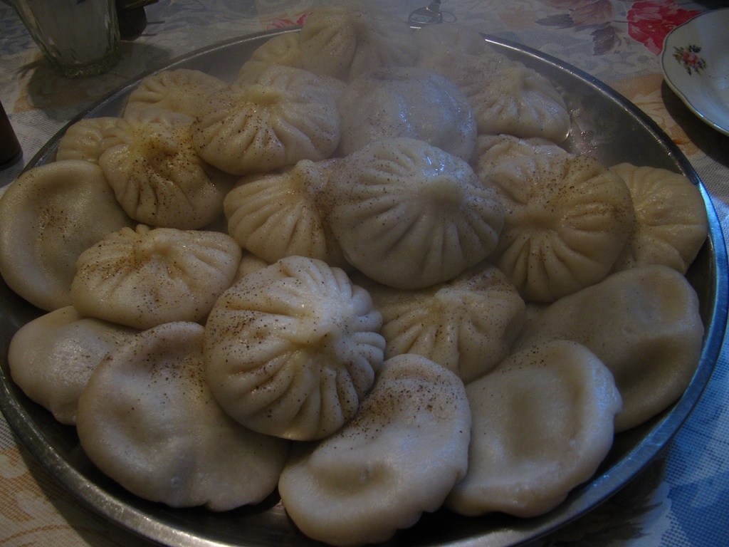 High in the Caucasus, perched on a cliff in the shadow of Mt. Kazbek, the isolated magnificence of Gergeti Trinity Church (as seen in Photo 2) is matched by the wizardry of the khinkali maker’s fingers (as seen in Photo 3) in Kazbegi, the hamlet below. A plate of these handcrafted dumplings (as seen in Photo 4) resembles the mountainous backdrops of the hamlets in which they originated, and is essential after hiking three hours each way to and from the church. Eating them is an art in itself: holding each by its stem, one bites off a corner and slurps the juice before devouring the rest (lest a shirt is spattered). The stems are placed back onto the plate (as seen in Photo 5), a tally and a trophy to whomever ate the most.