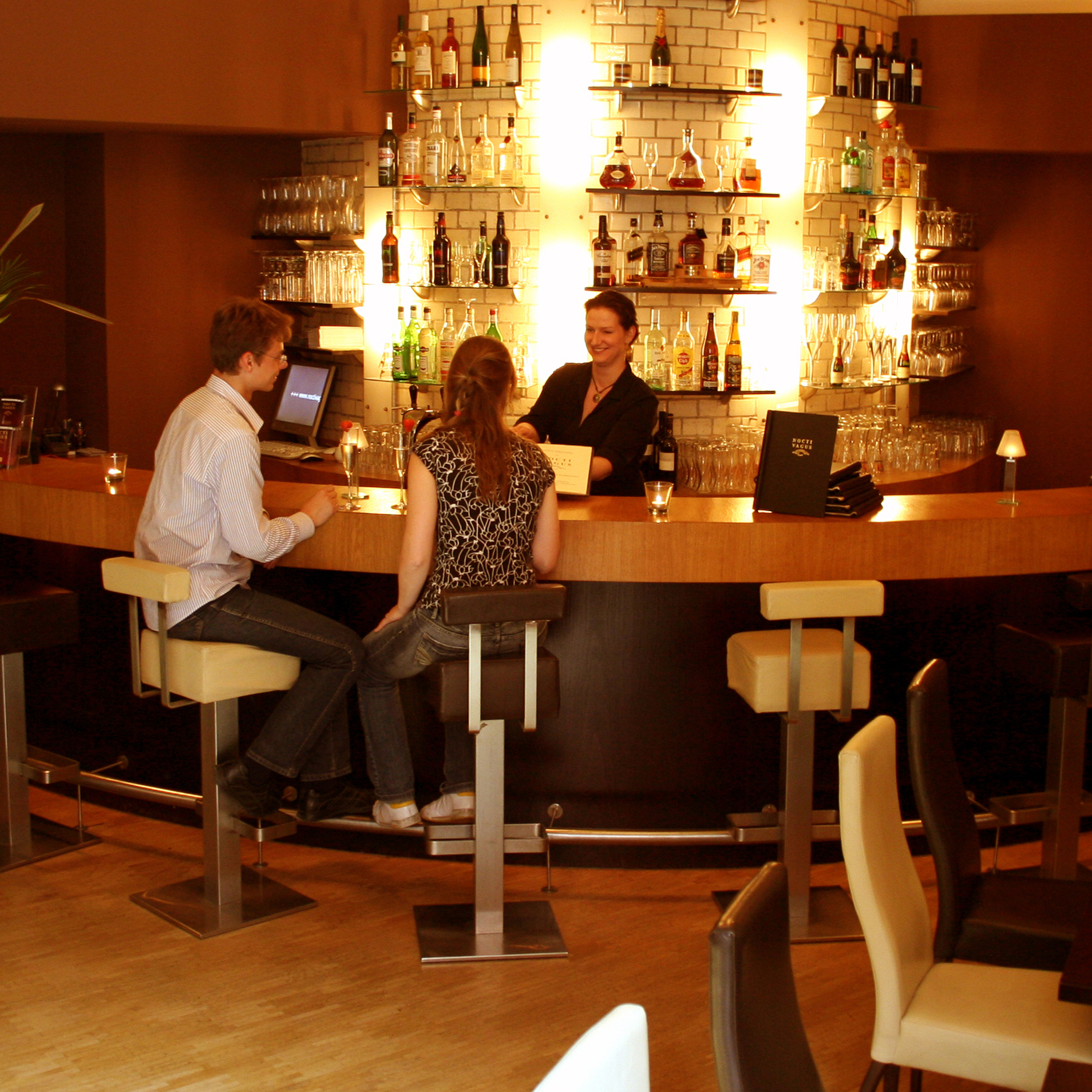 Date chutney on radish carpaccio and baby spinach, mousseline of freshwater crab on a bed of marinated chard, or a duo of rump fillet and stuffed breast of veal on beetroot puree with honeyed carrots are only a few examples from the mouth-watering menu of the Nocti Vagus restaurant. Unsicht-Bar’s bill of fare, on the other hand, avoids actual food names and uses poetically enigmatic descriptions instead. How about A taste of Aztecan masculinity on wavy green and voluptuous red bedding for appetizer? And some Upper nobility embraces the French underworld in a deep dark red river of sensuality for main course?