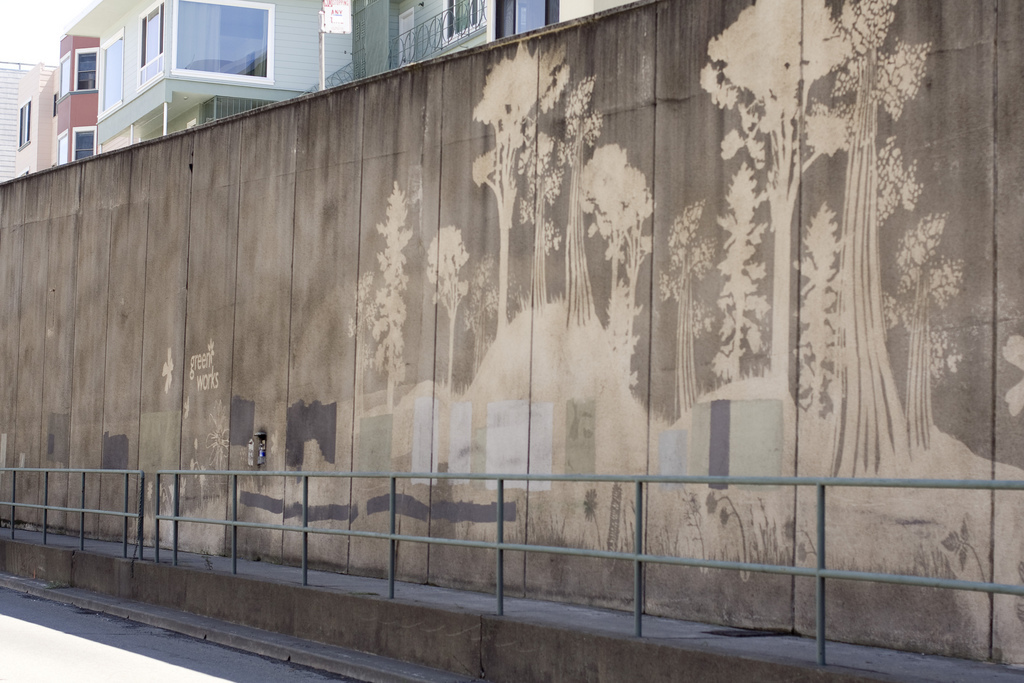 He then partnered with Clorox’s eco cleaner Green Works to create a Reverse Graffiti Project in San Francisco’s Broadway Tunnel in 2008. The 120-foot mural depicts Californian vegetation, which used to grow where traffic now speeds by (as seen in photo 4).