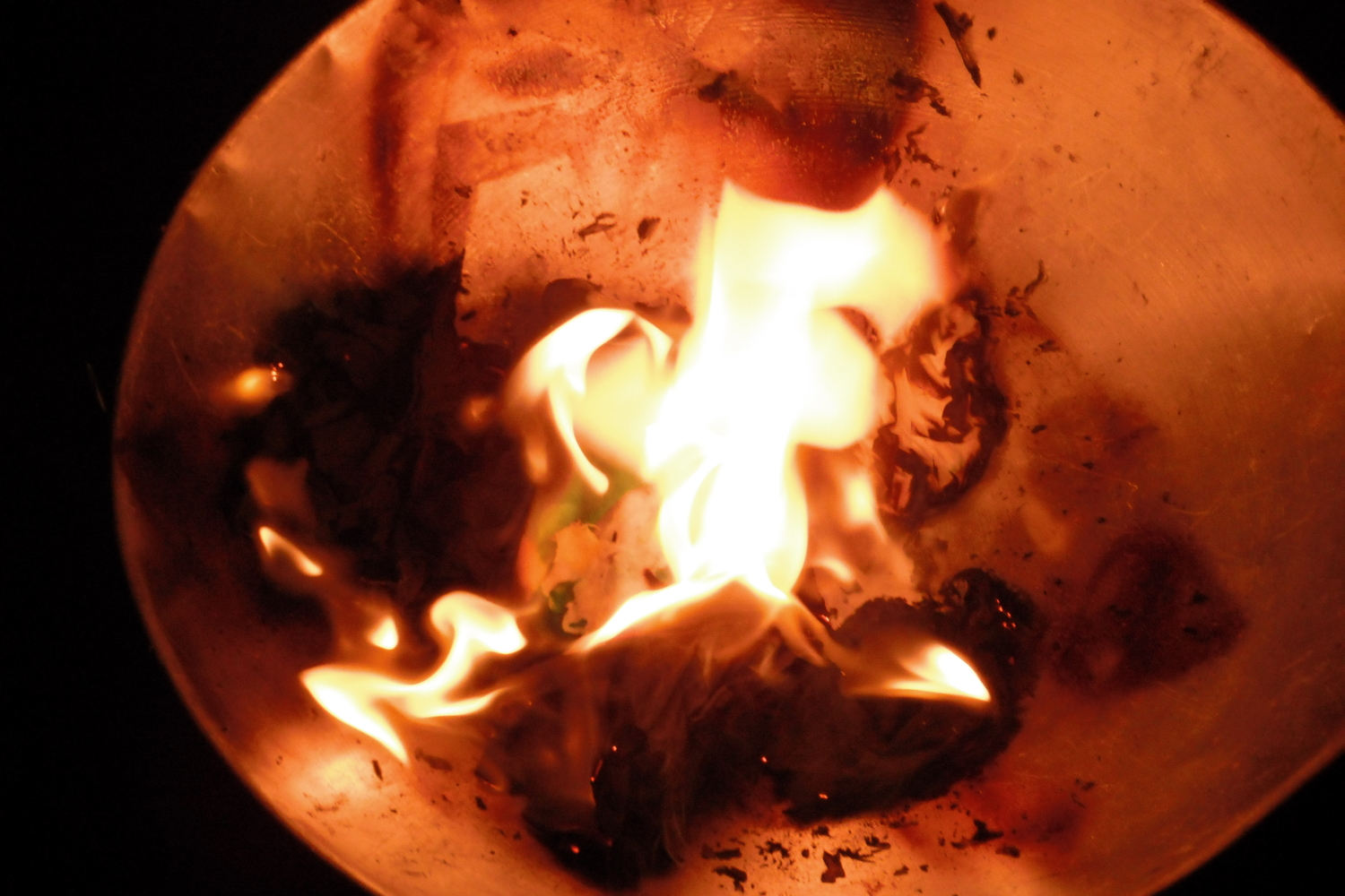 fire in metal bowl