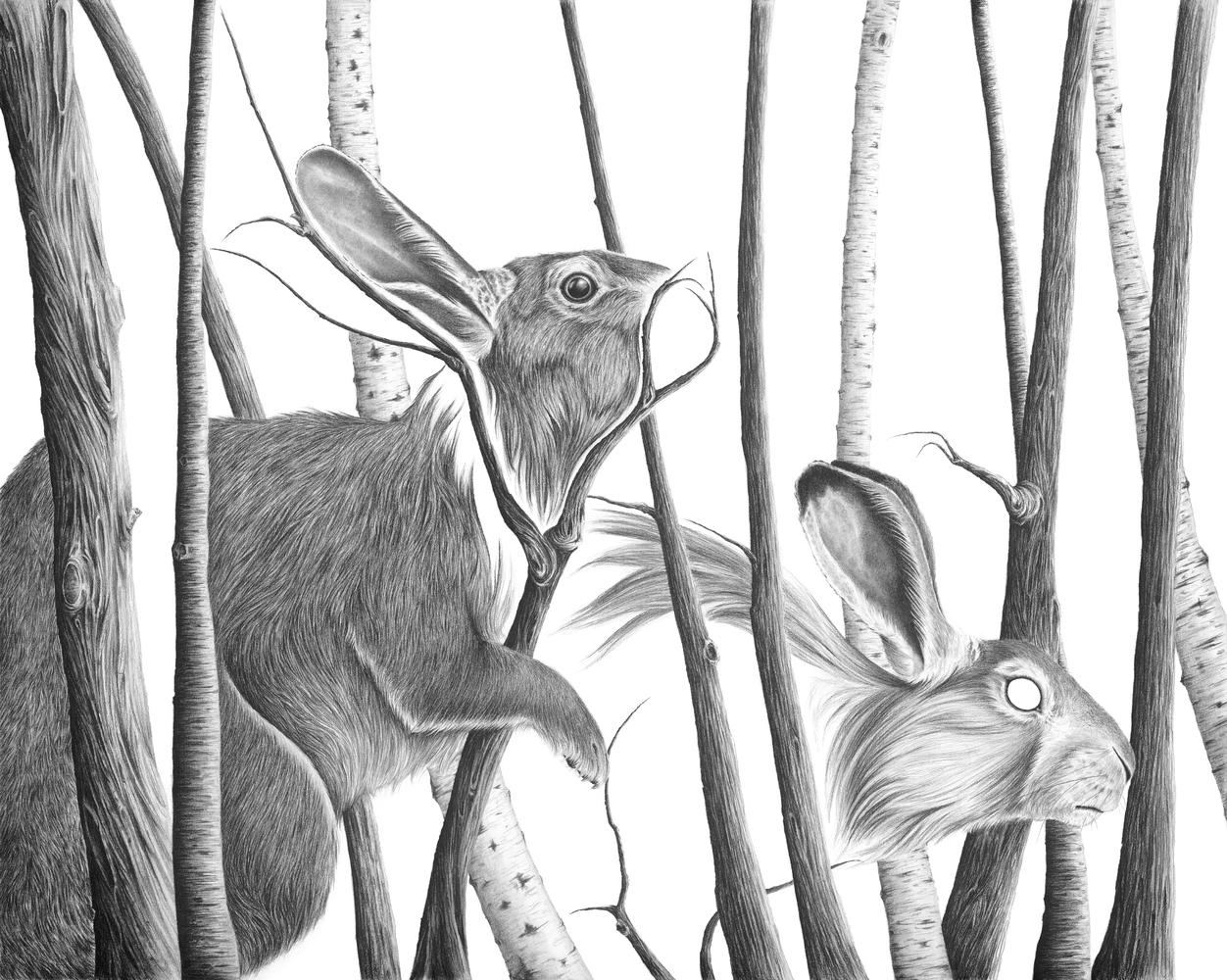 With graphite pencils, she ...