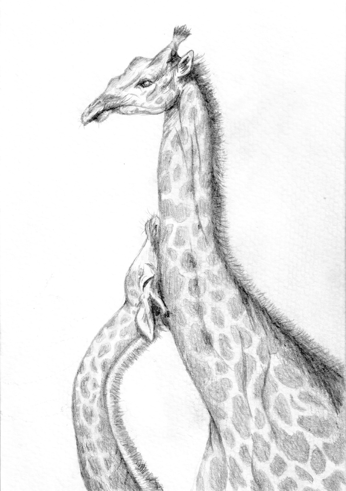 Mother and child giraffe dr...