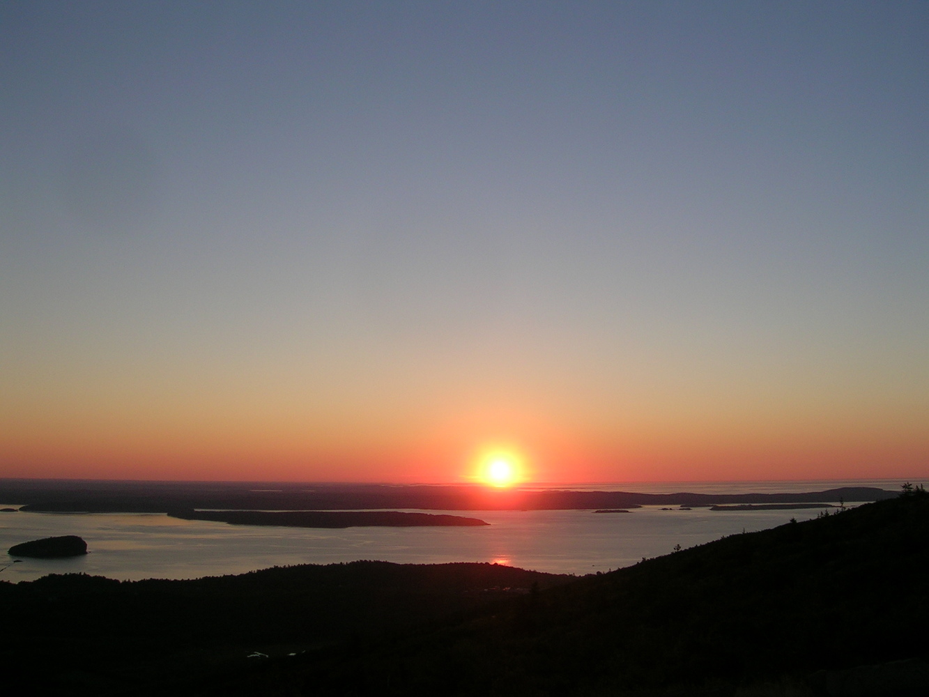 sunrise over ocean from mountain top