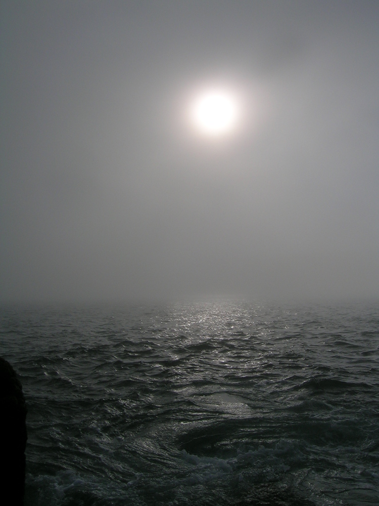 sun through mist over ocean...