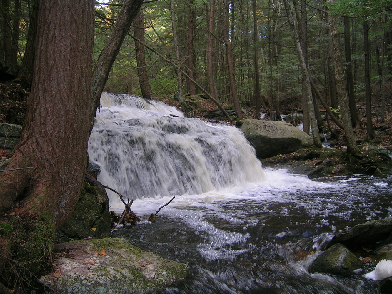 waterfall with tree and rocks