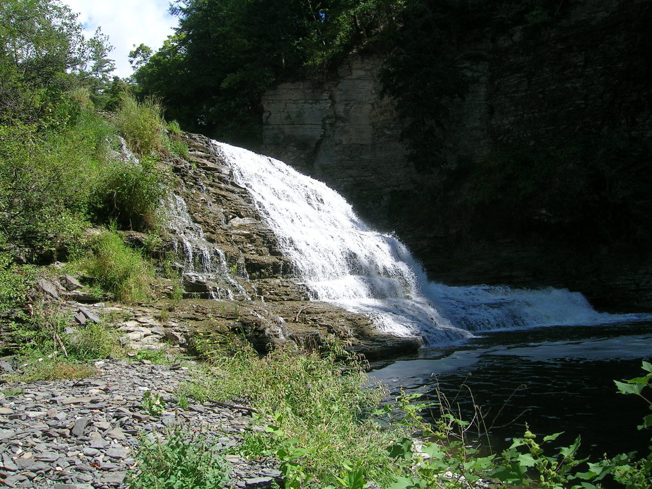 waterfall with cliff and brush
