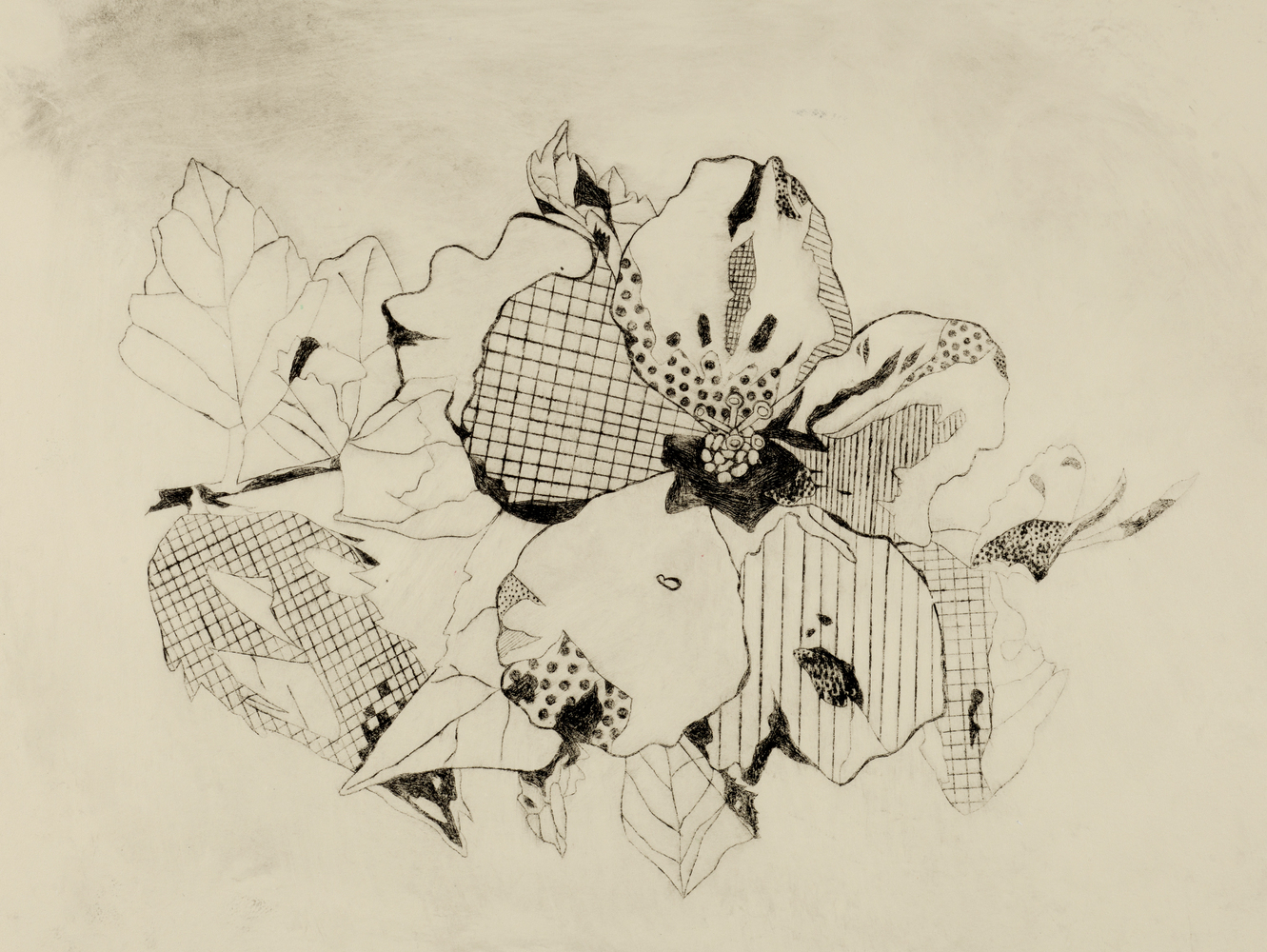 Black Hibiscus Etching Print