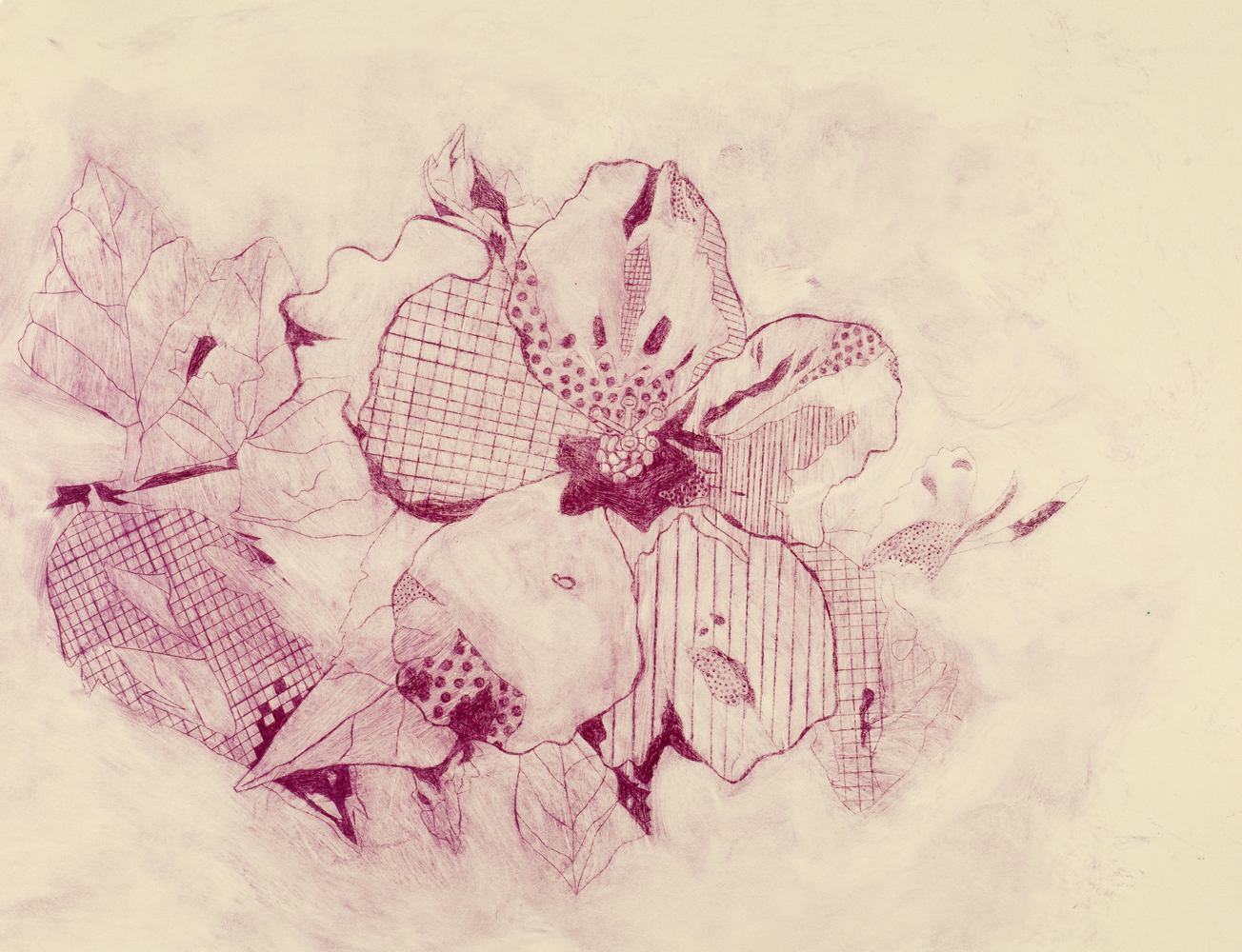 Pink Hibiscus Etching Print