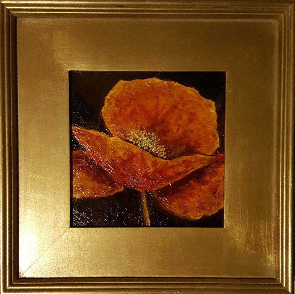 Framed poppy on heavily tex...
