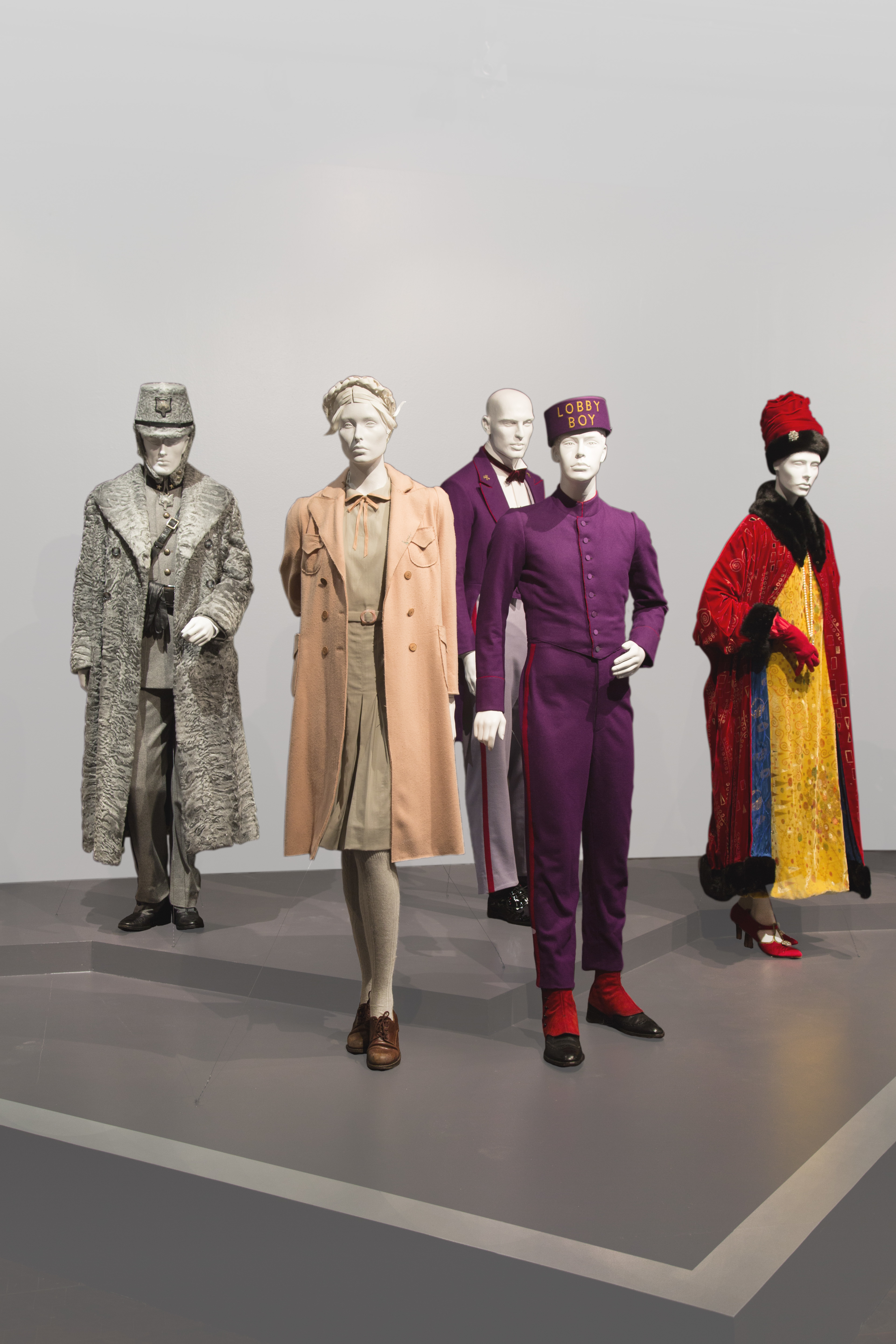 This undated photo provided the Fashion Institute of Design and Merchandising Museum in Los Angeles shows costumes from last year's Oscar winner for costume design, "The Grand Budapest Hotel." It is a tradition for the museum to salute and feature the previous year's winning costumes along with disp